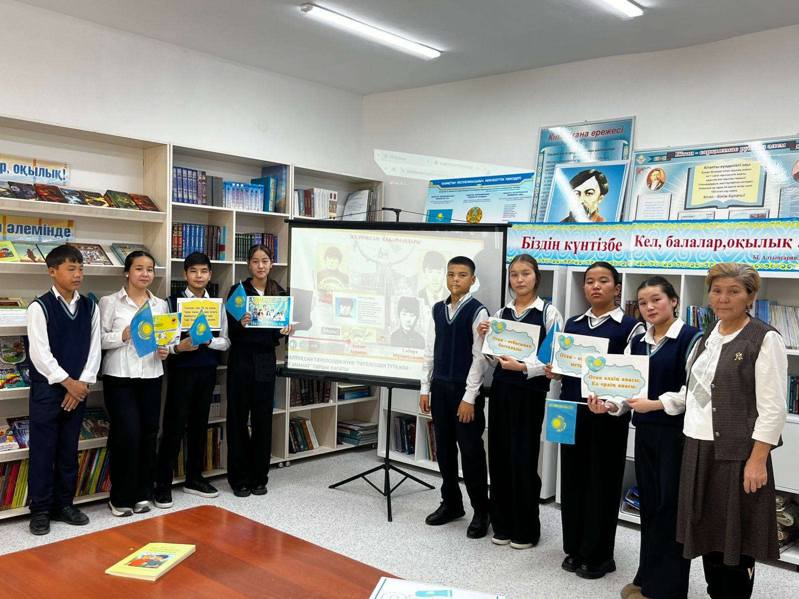 Ш.Қалдаяқов Атындағы мектеп-гимназиясында"Балалар кітапханасы" жобасы аясында мектеп кітапханасында кітапханашылар мен 8 сынып оқушыларымен бірге"Тәуелсіздік -азаттықтың ақ таңы"тақырыпта 16 желтоқсанға іс- шара өтілді.