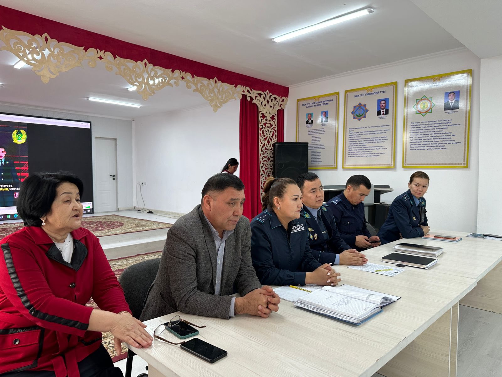 Отырар АПБ ҚҚБ ЮПТ-ң инспекторы полиция капитаны,мектеп инспекторы Д.Ерденова,Отырар аудандық АПБ, КПБ-ның бастығы, полиция майоры Сейдехан Әлшері,Отырар АПБ ҚҚБ ОТЗЗҚКТ аға инспекторы полиция капитаны Надирова Зүбайра,