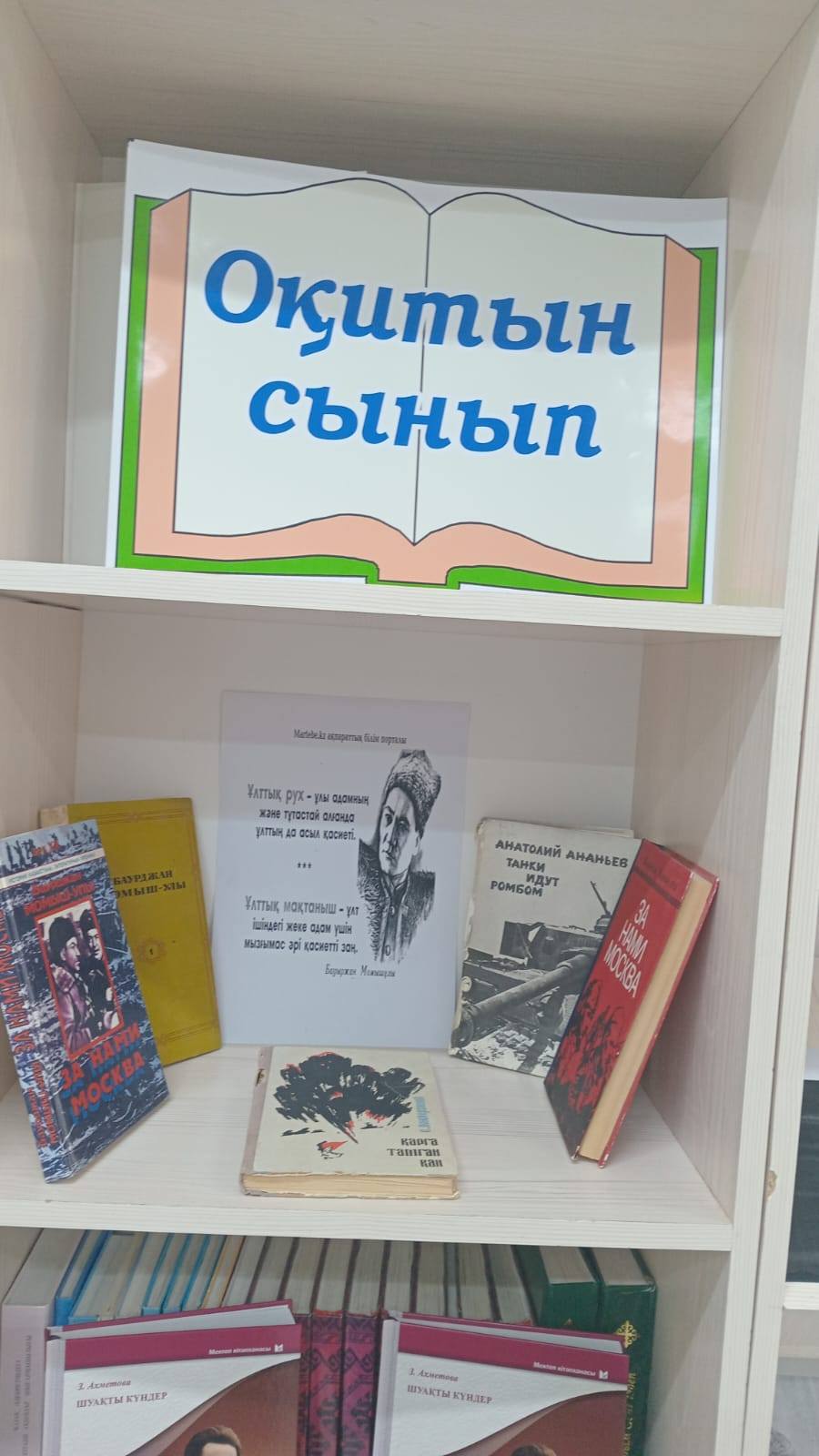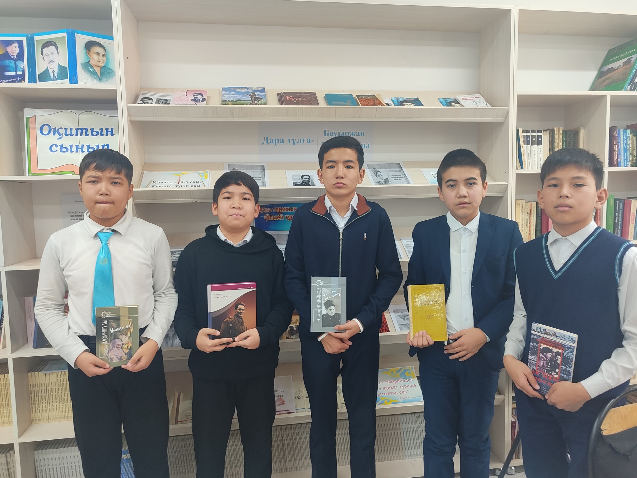 Ш.Қалдаяқов атындағы мектеп-гимназия кітапханасында "Оқитын сынып" жобасы аясында 2026 жылдың 27 қаңтарда 7"ә" сынып оқушыларымен Кенес Одағының батыры,қазақ халқының көрнекті жазушысы,Халық қаhарманы Бауыржан Момышұлының өмірі мен шығармашылығы,қызметіне арналған "Дара тұлға -Бауыржан Момышұлы"атты шығармашылық сағат өткізілді.