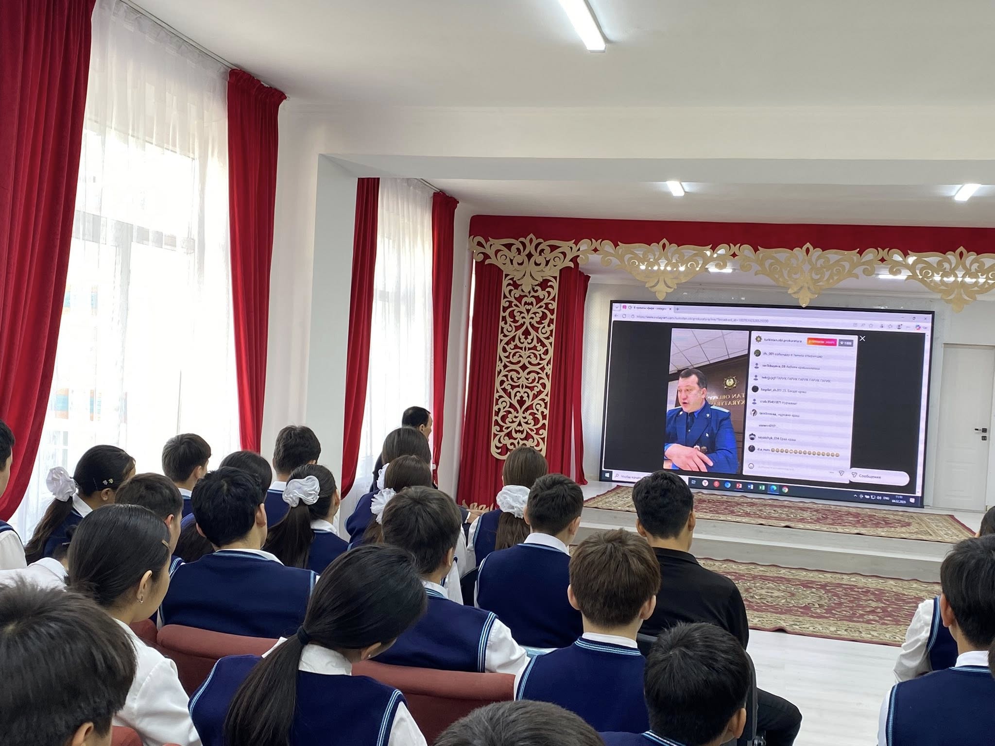 2026 жылғы 4 ақпан күні сағат 11:00-де «Заң мен тәртіп”,”Қауіпсіз балалық шақ үшін” жобасы аясында Түркістан облысы прокурорының орынбасары Тлемисов Даулет Бекбашұлының қатысуымен мектеп оқушыларына арналған тікелей эфирде кездесу өткізілді.